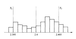 某产品关键尺寸的规范为2.4±0.005,由于该尺寸的加工合格率较低,车间专门成立了质量改进小组掌握关键尺寸的分布情况,分析合格率低的原因,并进一步采取相应的改进措施。 小组收集了以往的检验数据,并据此绘制了直方图(见下图)。根据图示,小组下一步的工作是()