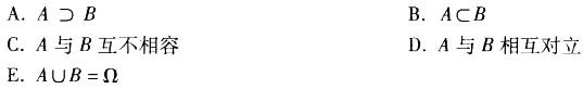 <p>从一批产品中随机抽取3个,记事件A“至少有一个是合格品”与事件B“都是不合格品”,以下叙述正确的有()[2007年真题]