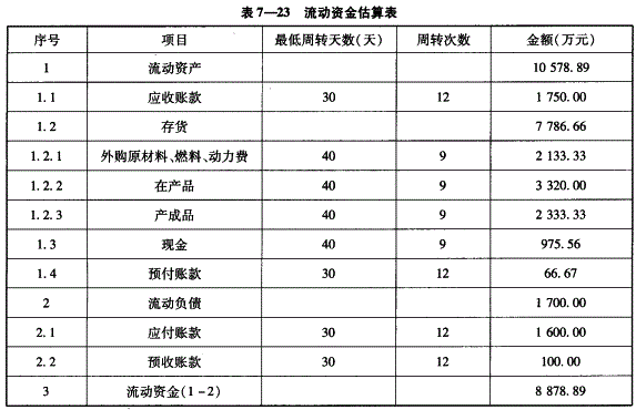 编制流动资金估算见表7-23。