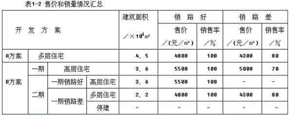 两方案销路好和销路差时的售价和销量情况汇总于表1-2。