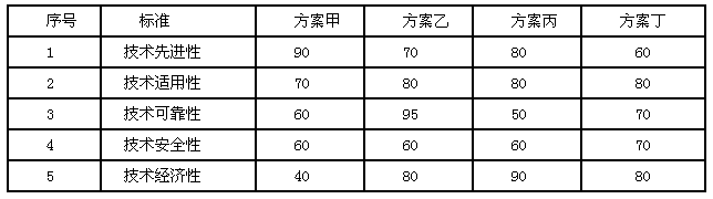 有甲、乙、丙、丁四个备选的技术方案,确定采用技术先进性、适用性、可靠性、安全性和经济性等标准进行评价,假定各项指标的重要性相同,各方案的评价分述见表。请对四个方案进行排序,应推荐的方案是()