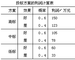 注:亦可先计算因材料涨价而增加的成本额度(1500×60%×3%)万元=27万元,再分别从低三个报价方案的预期利润中扣除。