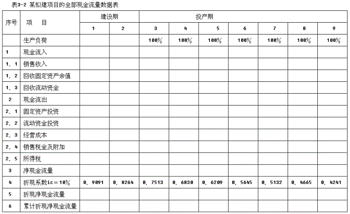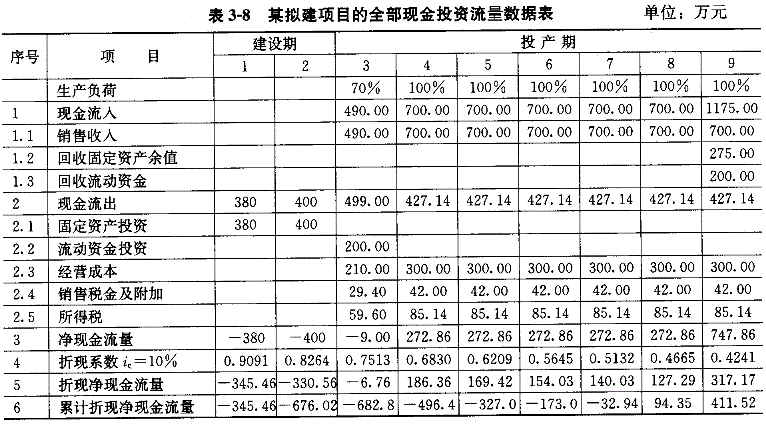 2.根据表3-2格式和以下计算数据,编制全部投资现金流量表3-8。
