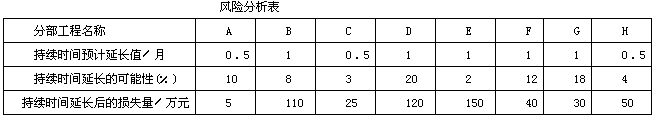 某工程,施工单位向项目监理机构提交了项目施工总进度计划(见下图)和各分部工程的施工进度计划。项目监理机构建立了各分部工程的持续时间延长的风险等级划分图(见下图)和风险分析表(见下表),要求施工单位对风险等级在"大"和"很大"范围内的分部工程均要制定相应的风险预防措施。