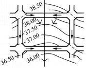 图中列出的四种场地竖向设计的排水方式,其中哪种方式较为简洁,可以简化设计及施工过程?()