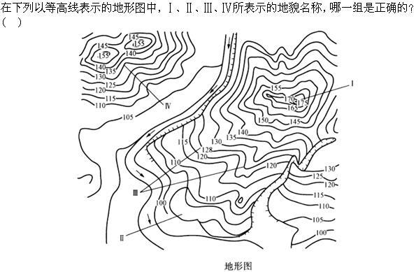 D.Ⅰ山顶、Ⅱ台地、Ⅲ山脊、Ⅳ山谷
