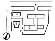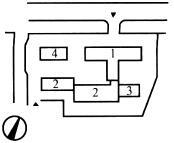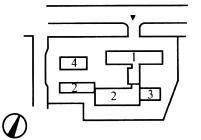 下列关于综合医院总平面布置图中,哪项布置较好(1-门诊;2-病房;3-手术;4-营养病房)?()