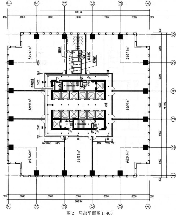 图1为某超高层办公楼,标准层的面积为2000㎡,外墙窗为固定窗,根据现行消防设计规范、任务要求和图例,以经济合理的原则完成消防设施的布置。