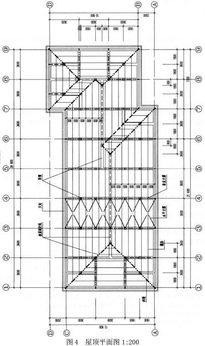 图1为某多层住宅的平屋面拟改为坡屋面(图2),结构自下而上采用卧梁、立柱、斜梁、檩条支承方式(图3),屋顶平面图已给出屋面改造所需的卧梁和坡屋面交线。要求按照经济合理的原则完成结构布置。