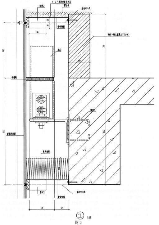 下图为某多层公共建筑玻璃幕墙的局部立面示意图(图1、图2),幕墙形式为竖明横隐框架式,要求按适当做法与以下制图要求绘制节点构造详图(在图3、图4上作答)。