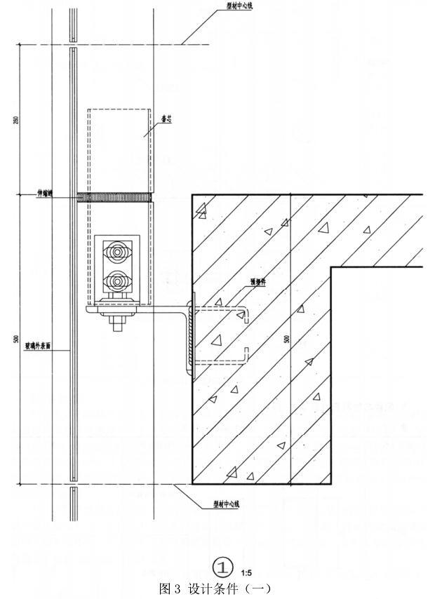 (1)各节点构造详图中型材中心线、中空玻璃位置、幕墙与建筑主体结构的连接构造已给定,按表1选用合适的配件及材料,完成①~④各节点的构造详图,可以采用简图绘制,注明所选配件与材料名称及必要的尺寸。