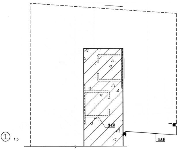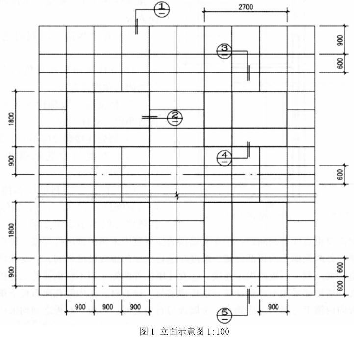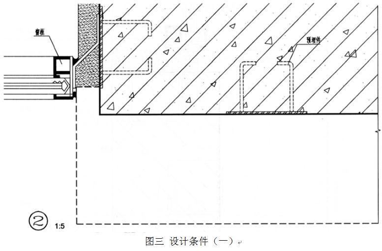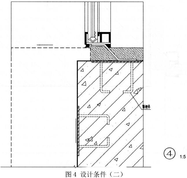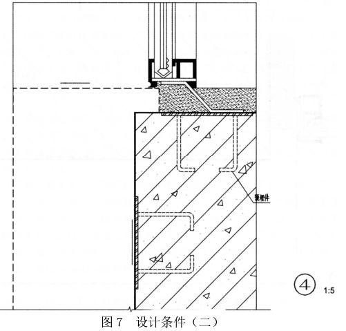 下图为某多层公共建筑的局部立面(见图1、图2),其外饰面为干挂30mm厚花岗石板,要求按提供的配件及材料绘制指定节点的构造详图(在图3~图5上作答)。