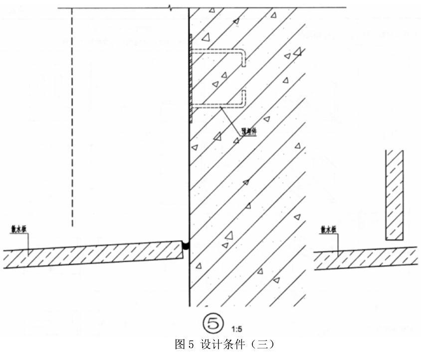 【解析要点】 (1)仔细阅读任务要求,尤其是构造要求部分,该部分对于绘制相关节点有重要的提示作用。 (2)根据构造要求部分可以知道干挂石材幕墙的构造关系(从内到外):墙体内预埋件→立柱→横梁→不锈钢挂件→花岗岩板。 (3)各个构造层之间的连接顺序的确定。 1)立柱采用螺栓与角码连接,再通过角码与预埋件焊接。 2)横梁应采用螺栓与角码连接,再通过角码与立柱焊接。 3)每处连接螺栓应不少于 2 个。 (4)本题的解题依据为《外装修(一)》。 (5)节点①绘制可以参照《外装修(一)》①,该节点绘制需要重点处理的问题:①女儿墙顶的横梁题中未预留预埋件焊接,所以该横梁可以与女儿墙内外两侧横梁的顶部焊接,坡度与题目给定的虚线坡度相同。②女儿墙内侧,需要设置 2 道横梁以利于石板的固定连接。③女儿墙内外两侧采用不锈钢挂件二连接横梁与干挂石材,女儿墙顶部采用不锈钢挂件一连接横梁与干挂石材。④内侧花岗石板下用金属板收口,金属板向内侧上方倾斜形成滴水。金属板与石板之间、石板与石板之间均采用嵌缝密封膏防水。 (6)节点②绘制可以参照《外装修(一)》④,该节点绘制需要重点处理的问题:①连接窗口侧墙花岗岩石板的横梁与外墙横梁垂直焊接。②花岗岩石板转角连接处,内侧花岗岩石板与窗框的连接处,采用嵌缝密封膏防水。 (7)节点③的绘制要求考生明确各构件的构造顺序。 (8)节点④绘制可以参照《外装修(一)》②,该节点绘制需要重点处理的问题:①连接窗台板花岗岩石板的横梁与外墙横梁垂直焊接。花岗岩石板坡向外侧,利于排水。②花岗岩石板转角连接处,内侧花岗岩石板与窗框的连接处,采用嵌缝密封膏防水。③外侧采用不锈钢挂件二连接横梁与干挂石材连接,窗体板采用不锈钢挂件一连接横梁与干挂石材。 (9)节点⑤考核的是散水处花岗岩石板的处理。花岗岩石板与散水板之间的连接,需要用嵌缝密封膏防水。