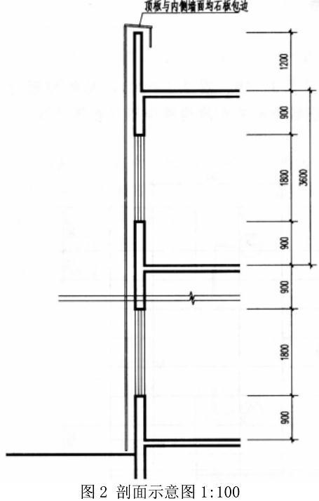 (3)采用不锈钢挂件一时在石板上下端开短平槽,采用不锈钢挂件二时在石板内侧开短斜槽,短斜槽距离石板两端部的距离应不小于85mm,也应不大于180mm。