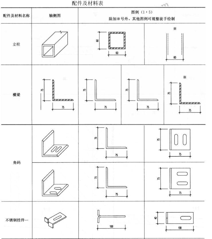 采用下列配件及材料(下表),完成图6~图8各处节点详图。
