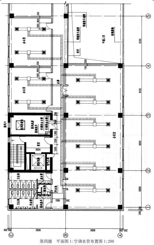 1.平面图1:布置会议室风机盘管的空调水管系统。