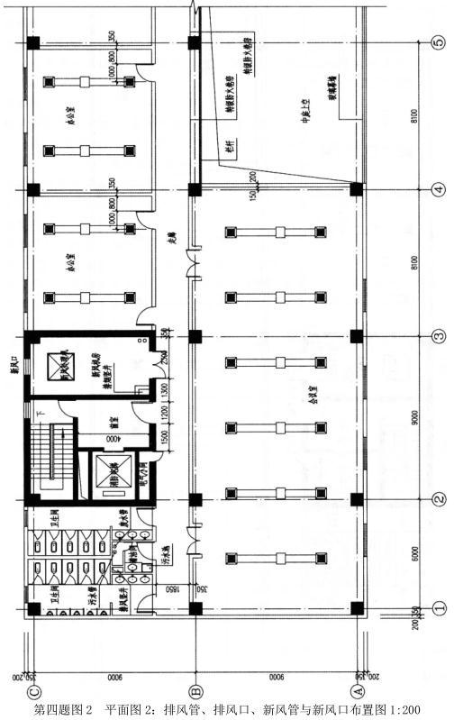 2.平面图2:布置排风管和排风口;布置新风管和新风口,新风由新风机房提供。