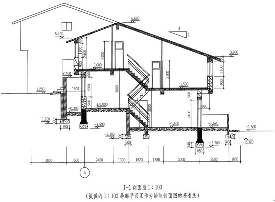 1.画出1:50剖面图,它应包括基础、楼地面、屋面、内外墙、门窗、楼梯、梁、防潮层及可视线等。
