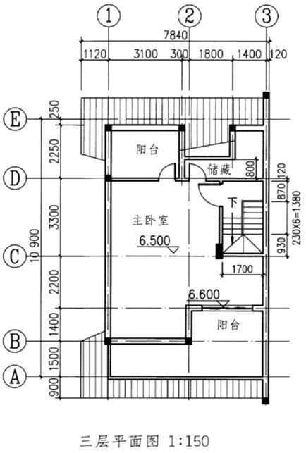 层高:一层3500mm(局部2750mm),二层3000mm,三层檐口最低处标高7200mm。