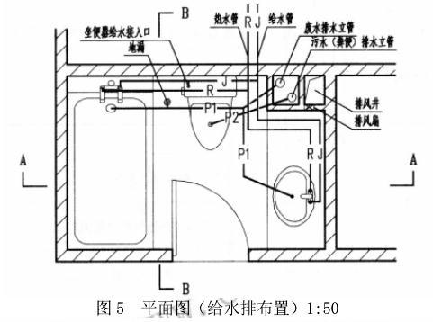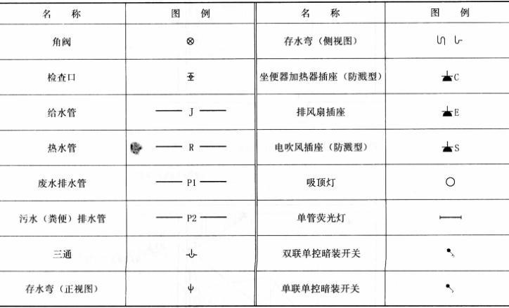 (1)给排水布置:按照图例,在平面图、剖面图中表示以下内容:
