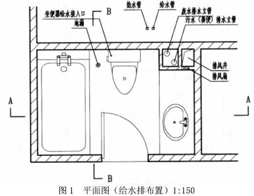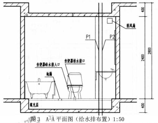 图1~图4为某多层住宅楼卫生间平面图、剖面图,按布置要求,经济、合理地画出给排水和电气布置。