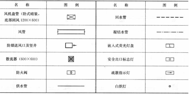 1)灯具:会议室,绘图室、办公室的灯具为嵌入式荧光灯盘,规格为600mm×1200mm。消防合用前室、楼梯间及走廊为白炽灯。