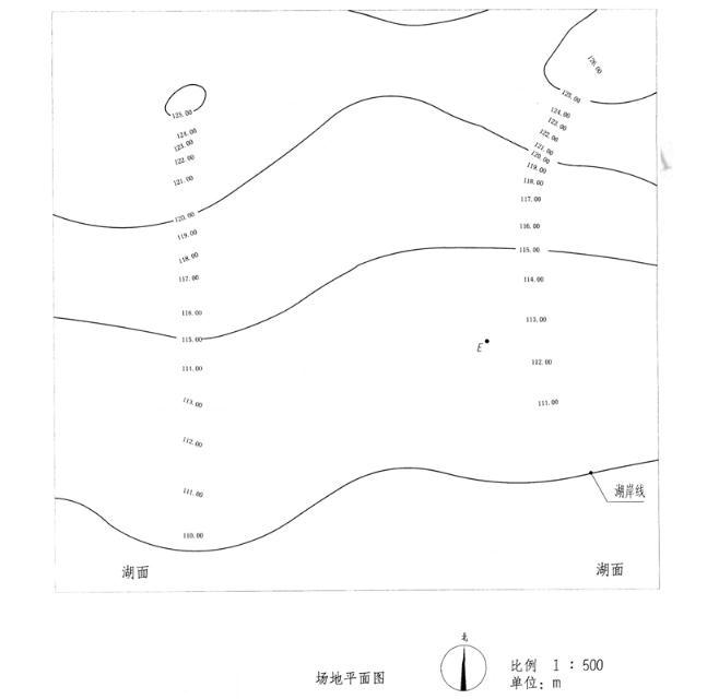 设计条件 1.湖岸山坡地地形如右图所示。 2.拟在该场地范围内选择一块坡度不大于10%,面积不小于1000m的集中建设用地。 3.当地常年洪水位标高为110.50m,建设用地最低标高应高于常年洪水位标高0.5m。