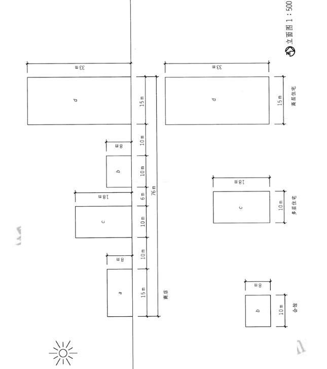 <p>设计条件 某住宅小区,日照间距系数为1.25。若要达到a、b、c、d四幢建筑物间距及基底总长度最短应如何布置? <im