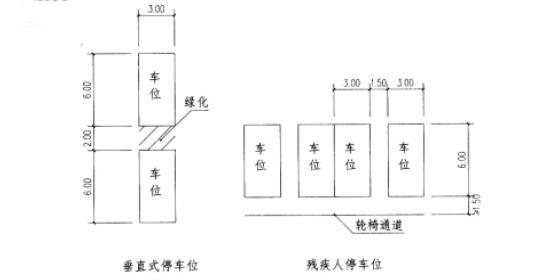 4.停车场内车行道要求贯通,宽度不应小于7m:停车方式采用垂直式,停车位尺寸及布置要求见示意图。