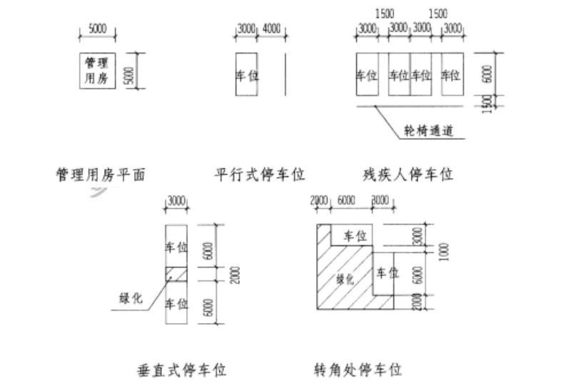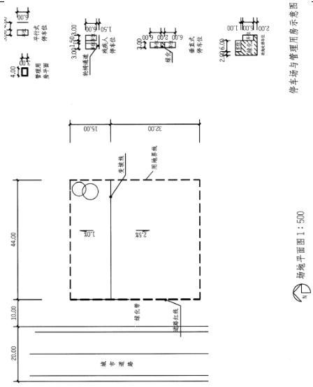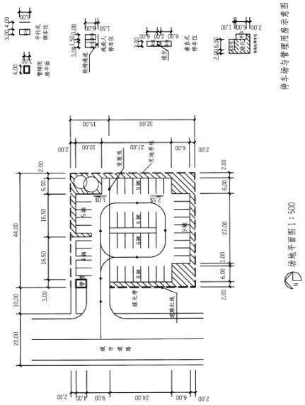 2.要求在用地范围内尽可能多布置停车位(含残疾人停车位4个),并设管理用房一处,停车位与管理用房要求见示意图。