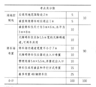 设计条件 1.拟建停车场用地界线如图。 2.垂直停车位尺寸为3m×6m,水平停车位尺寸为3m×8m。不少于4个残疾人停车位。行车道宽7m,并应形成环路。 3.沿用地界线内侧至少留出2m宽绿化带,当垂直转角停车时应退让1m。 4.停车场入口处设5m×5.5m管理室一栋。