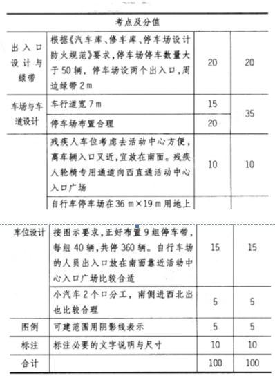 2.要求在活动中心建筑东侧原有场地布置自行车停车场,保留原门卫和出入口,其余用地范围内尽可能多布置小汽车停车位(含残疾人停车位6个),停车位尺寸及布置要求见停车位平面图。