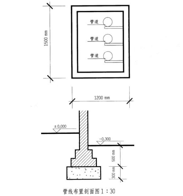 设计任务 某建筑场地中,需在建筑物旁安排综合管道沟。要求埋深为900mm,已知场地土的内摩擦角α为30°,其tanα=0.577。要求在剖面中布置管道沟。管道沟内设有热水管、煤气管、给水管、污水管中的三种。