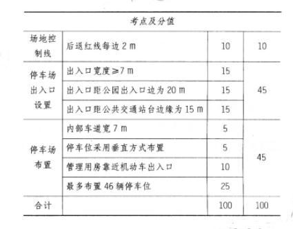 设计条件 在某城市公园附近需增设一处停车场地。场地西面邻近公园出入口,场地北面道路红线外设有公交车站(如图所示)。在进行停车场地布置时,应满足如下要求: 1.后退红线每边2m; 2.尽可能多地布置停车位; 3.进行管理用房(5m×6m)及绿化带布置。