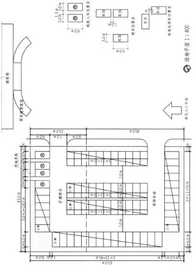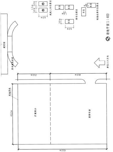 设计条件 1.某单位拟扩建停车场,保留原有停车场入口,用地界线如图所示。 2.沿用地界线内侧至少留出2m宽绿化带,如果设计成纵横垂直排列停 车方式时其转角处应退让1m。 3.垂直停车位尺寸为3m×6m,不少于4个残疾人停车位。并设无障碍通道通向建筑入口。 4.车行道宽7m,并尽可能形成环形车道。