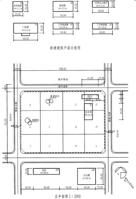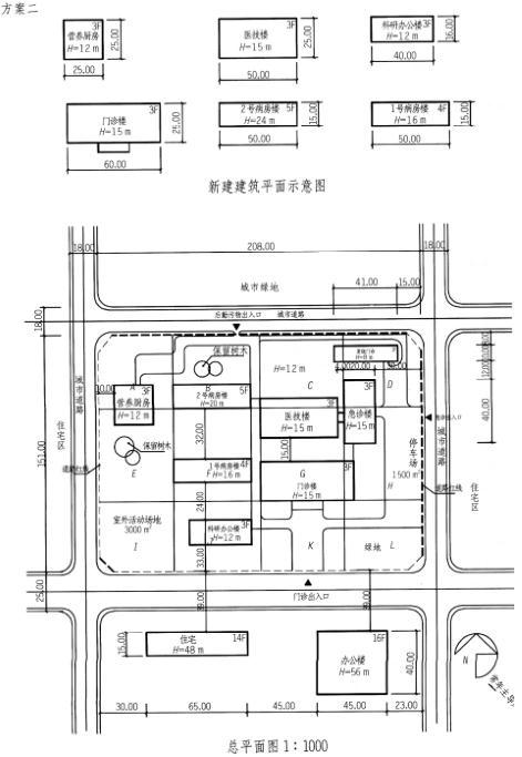1.用地中保留建筑物拟建为急诊楼和发热门诊,如图所示。