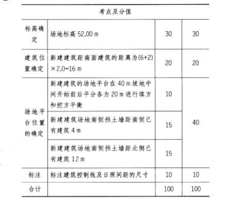 设计条件 1.某坡地已建有两栋建筑,南面建筑与北面建筑之间的间距是49m,其中坡地剖面如图所示。 拟在两栋已有建筑之间加建一栋新建筑,三栋建筑均为6m高。场地之间采用挡土墙分成三级水平台地。 2.要求通过一次挖方和填方确定新建建筑场地标高,并达到土方平衡。 3.要求新建建筑离南面建筑的距离最小。 4.日照间距系数为2.0。