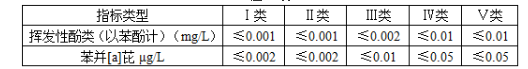 某地下水水样挥发性酚类(以苯酚计)检测浓度为0.001mg/L,苯并芘浓度0.002μg/L,根据《地下水质量标准》(标准值见下表),判定该地下水质量类别为( )。