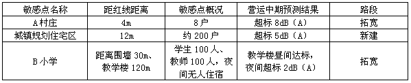 表1-1 工程所在区域概况及公路营运中期的噪声预测结果