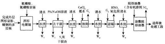 图8-1 图形电镀锡—涂敷阻焊油墨段工艺流程和产污节点图