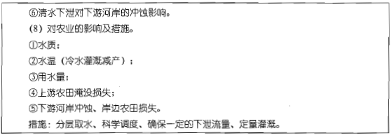 3.大坝建设对下游河道、农灌及工业用水有何影响? 答:(1)对下游工、农业取水的影响。如果取水口处于减水段,则会导致农灌、工业用水量的不足,可用水量减少甚至缺失,严重影响下游工、农业生产的发展。