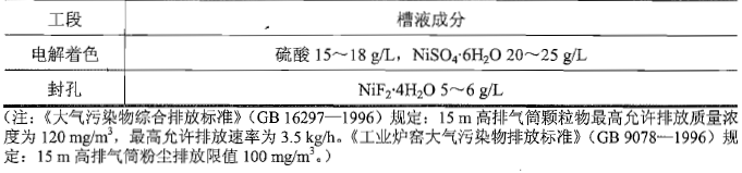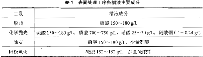 表面处理生产工艺为:工件→脱脂→水洗→化学抛光→水洗→除尘→水洗→阳极氧化→水洗→电解着色→水洗→封孔→水洗→晾干。表面处理工序各槽液主要成分见表1。表面处理工序有酸雾产生,水洗工段产生清洗废水。拟设化学沉淀处理系统处理电解着色水洗工段的清洗废水。