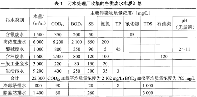 某新设立的工业园区规划建设l座规模为30000t/d的污水处理厂,收水范围包括工业园区和相距3km处的规划新农村小区。工业园区定向招商入区企业的工业废水总量为15300t/d,拟收集的生活污水总量为9200t/d。拟将入区企业工业废水分类收集送至污水处理厂进行分质预处理。污水处理厂收集的各类废水水质见表1。