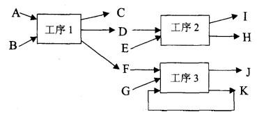 本题主要考查工艺过程分析与物料平衡法的运用。物料平衡法是化工石化医药类项目工程分析经常运用的基本污染源强分析方法之一。物料平衡法计算污染物排放量是最基本、最常用的化工石化医药类项目估算污染物排放量的方法。进行物料平衡分析计算应注意:①正确确定分析的边界或者计算的出入节点;②理清物料转化、流失等的逻辑关系;③投入、产出的物料项目一定要列完全。题目中给定的条件是最简单的物料平衡分析。投入三种物料即A、B和溶剂甲苯,经过反应和浓缩后,能看到的产出物有浓缩物料、回收的甲苯和反应分出的废水,剩余的产出物应该是在反应过程中从回流冷凝器顶端排口和减压蒸馏真空尾气排放的甲苯,也就是流程图中标出的G1和G2。如果已知投入物料量和产出的分出水量、浓缩物量和甲苯回收量,就能通过物料平衡计算出甲苯废气的排放量。过滤滤渣量计算也是同样的道理。这是最简单的平衡计算,考试可能会有稍复杂的计算,比如产出中出现两个未知数,可以通过反应方程式以及给定的产率计算出产物或中间产物的量,再得到某类污染物的排放量。但都是应用一个基本原则来解决,即进入某单元的所有物料和产出单元的所有物料总和相等,工序内循环的不计入。比如下图的平衡关系中,可以得出A+B=C+D+F,D+E=I+H,F+G=J。对于工序3内循环的K项目,不必列入。