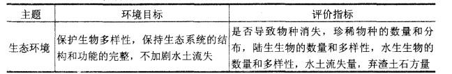 参考《规划环境影响评价技术导则》中评价的指标体系,从环境主题、环境目标和评价指标三个层次,结合本案例的实际情况提出。其中生态、水环境和社会经济是必须有的,空气质量、噪声、固体废弃物等可以省略。
