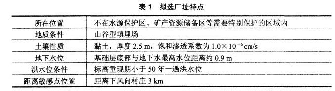 某大城市拟建一生活垃圾填埋场,设计填埋量为300万t,填埋厚度为25m,主要设施有:防渗衬层系统、渗滤液导排系统、雨污分流系统、地下水监测设施、填埋气导排系统以及覆盖和封场系统。按工程计划,该填埋场2011年1月投入使用。该填埋场渗滤液产生量预计为120t/d。拟将渗滤液送至该城市二级污水处理厂进行处理,城市污水处理厂污水日处理能力为30000t/d,目前日处理量为23000t/d。拟选厂址特点见表1。