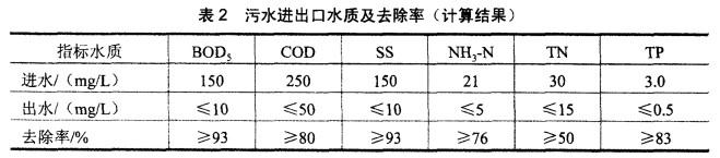 答:根据计算结果,BOD5、COD、SS、氨氮、TN、TP的去除率见表2。