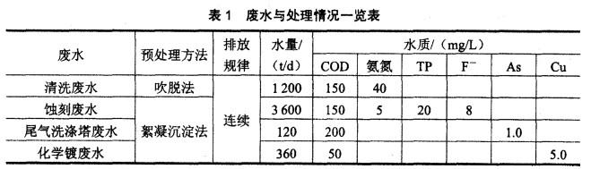 经过工程分析可知,拟建项目在生产过程中产生的清洗废水、蚀刻废水、尾气洗涤塔废水、化学镀废水将经过预处理后进入中和池,中和池出水排入开发区污水处理厂,废水预处理后的情况参见表1。
