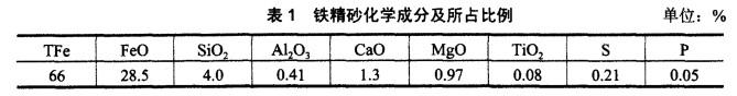 项目吨产品铁精砂耗量为1050kg,能源为天然气。铁精砂化学成分见表1。