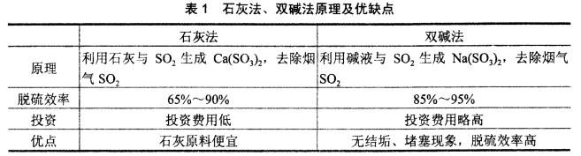 双碱法投资、运行费用比石灰法略高。石灰法、双碱法原理及优缺点见表1。